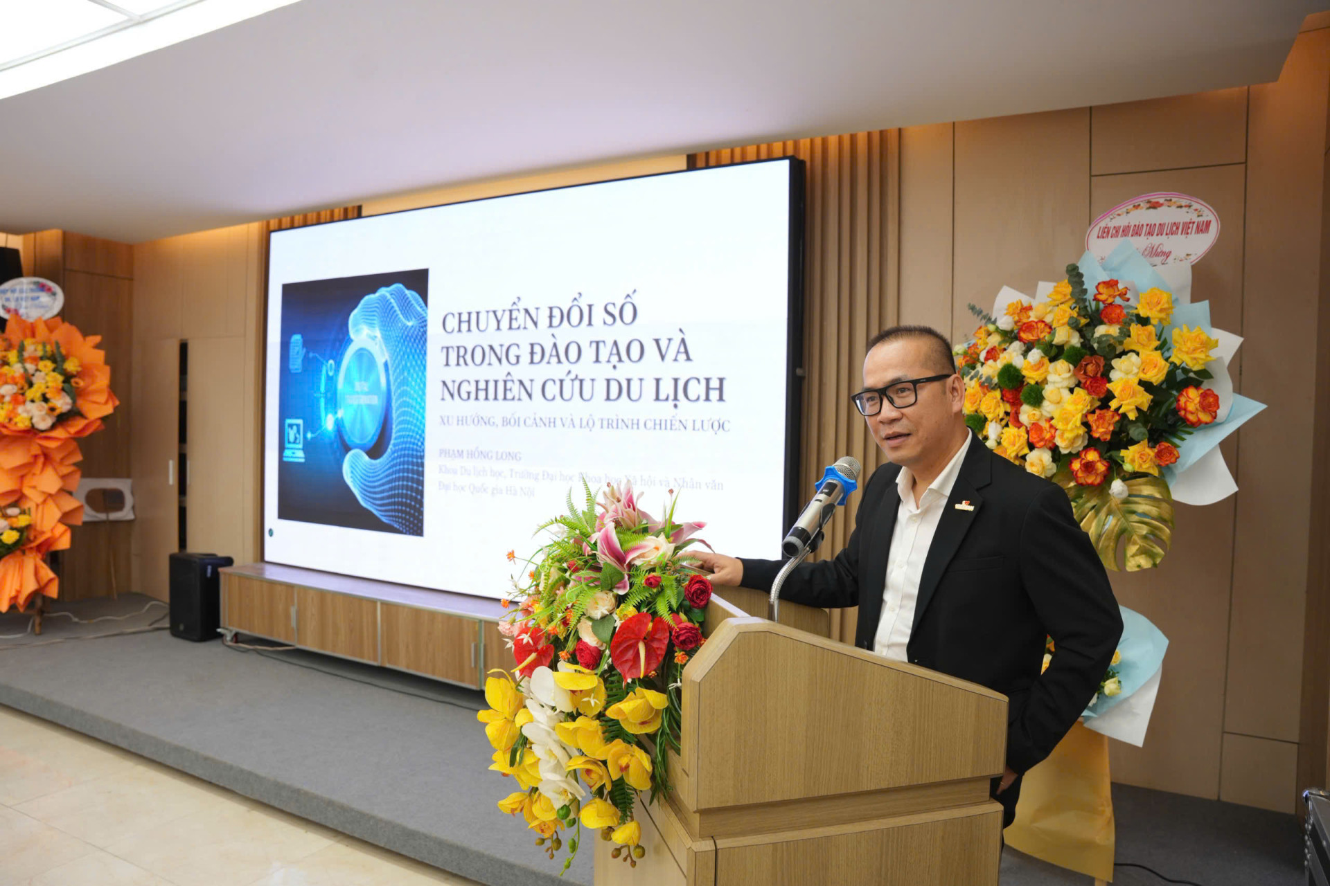 Sự kiện quy tụ đại diện lãnh đạo các cơ sở đào tạo, chuyên gia và giảng viên trong lĩnh vực du lịch trên toàn quốc, cùng trao đổi, chia sẻ giải pháp chuyển đổi số trong công tác giảng dạy và nghiên cứu. Đại diện Khoa Du lịch học - Trường Đại học Khoa học Xã hội và Nhân văn, ĐHQGHN, có sự tham dự của: